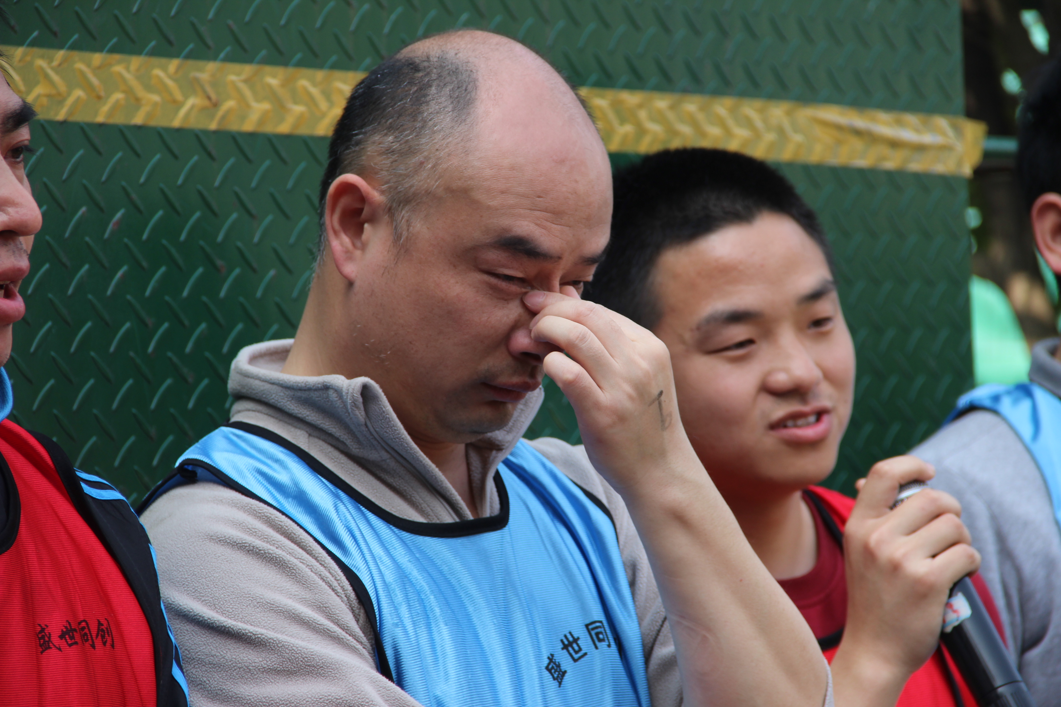 28日清晨7.30,全體參訓(xùn)人員準(zhǔn)時(shí)集合參加早上的晨練,教練讓大家充分活動(dòng)開自己的經(jīng)絡(luò)和骨頭,為上午的項(xiàng)目做準(zhǔn)備,全體員工不敢怠慢,認(rèn)認(rèn)真真的跟著教練做,后來的項(xiàng)目證實(shí)了早上的晨練沒有白做。晨練結(jié)束,吃過早餐,稍事休息便進(jìn)入了上午的訓(xùn)練,首先進(jìn)行的項(xiàng)目是翻撲克牌游戲,規(guī)則是總共有同一花色的1到K的13張撲克牌,A代表1,J代表11,Q代表12,K代表13,教練將撲克牌全部打亂順序一一平鋪在一個(gè)凳子上,每次只能去一個(gè)人翻牌,如果翻到的是最小的A,則翻過來亮牌,如果不是則翻回去恢復(fù)到原來的狀態(tài),看哪個(gè)隊(duì)能在最短時(shí)間里從A翻到K,經(jīng)過三輪的較量,3個(gè)隊(duì)不分上下,打成平手。上午最后一個(gè)項(xiàng)目是翻越極限墻,是最具挑戰(zhàn)的項(xiàng)目,早上的晨練就是為最后這個(gè)項(xiàng)目做準(zhǔn)備的,這個(gè)項(xiàng)目是全體員工參與的集體項(xiàng)目,所有參訓(xùn)人都只能通過徒手翻越這面高4.5米的光滑鐵板墻。下面的人員通過肩膀和手臂盡量往上推送人員,已經(jīng)翻上去的人員可以在上面拉下面推送的人員,所有人員在項(xiàng)目開始后不準(zhǔn)說話。教練一聲令下,第一個(gè)上去的是烈火隊(duì)隊(duì)長羊德兵,憑借良好的身體素質(zhì),很快他翻了過去,第二個(gè)張德也上去了,第三個(gè),第四個(gè)……可是正當(dāng)有5,6個(gè)人翻過去的時(shí)候有人說話了,教練暫停了挑戰(zhàn),讓翻過去的人下來重新準(zhǔn)備,讓3名隊(duì)長每人接受20個(gè)俯臥撐的懲罰。懲罰完畢,挑戰(zhàn)繼續(xù),這次大家更加用心了,更加賣力了,踩著同事的大腿,跨上同事的肩膀,一個(gè)一個(gè)的順利翻過了鐵墻。可是輪到最后一個(gè)人怎么翻的問題了,其中一名同事從上面倒掛下來,上面同事拉住他的腳,下面這名同事抓住他的手向上翻轉(zhuǎn),讓上面的人能抓住下面這名同事的腳,最終通過大家的共同努力有驚無險(xiǎn)的完成了挑戰(zhàn)。時(shí)間為28分鐘左右,距離開始定的1個(gè)半小時(shí)的目標(biāo),大幅縮短了,教練不太相信,我們自己也不太相信。汗水、淚水,掌聲、叫好聲,一幅幅激動(dòng)的臉龐,一個(gè)個(gè)濕潤的眼睛,感到了在場的所有人。
